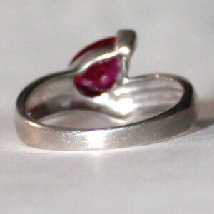 Sterling silver ring set with single pear shaped lab created ruby.