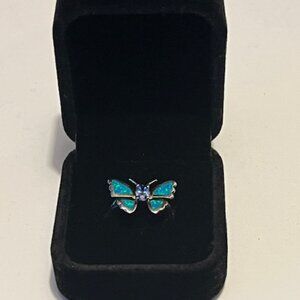Sterling Silver Lab Opal Butterfly Tanzanite CZ