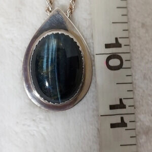Sterling Silver Labrodite Cabochon Necklace Excellent Condition