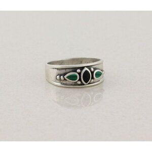 Sterling Silver Lapis Lazuli and Malachite Band Ring Size 10