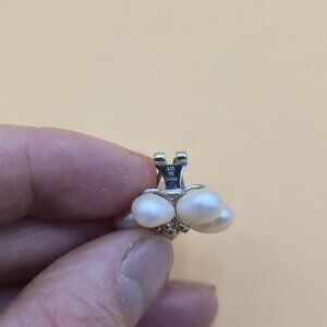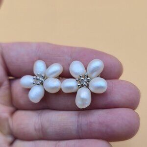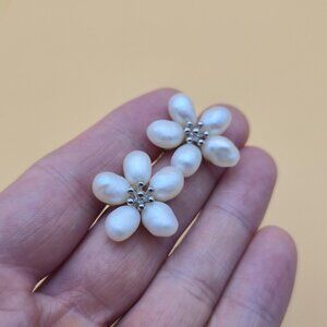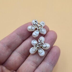 Sterling Silver Large Flower White Pearl Clip On Earrings A5630