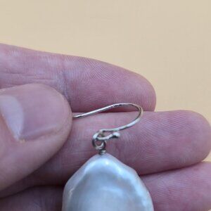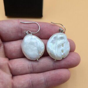 Sterling Silver Large Genuine Pearl Dangle Earrings A5275