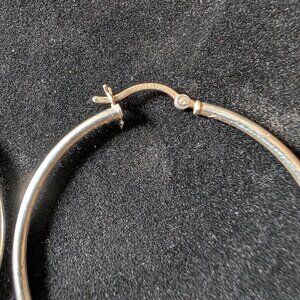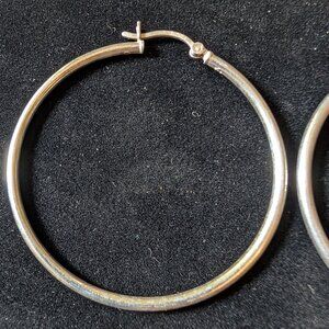 These sterling silver hoop earrings are in perfect condition. The width is 1.75". Thanks for looking!
