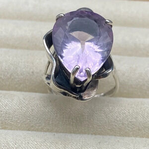 Sterling Silver Large Purple Sapphire Stone Statement Ring