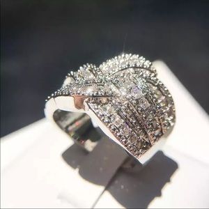 Sterling Silver Large Twisted Diamond Band Ring, BEAUTIFUL RING, SHINY RING.