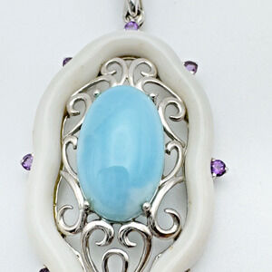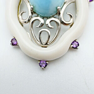 Sterling Silver Larimar Amethyst Pendant Enhancer White Agate QVC Design