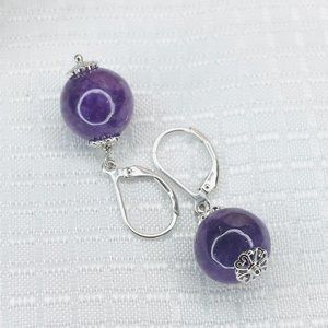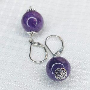 Sterling Silver Lavender Jade Bead Drop Leverback Earrings