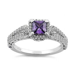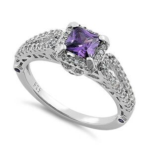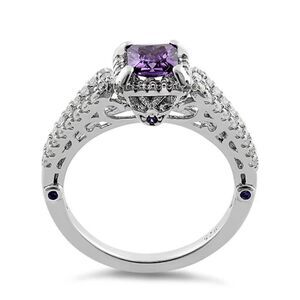 Sterling Silver Lavish Princess Cut Amethyst CZ Ring