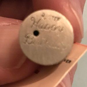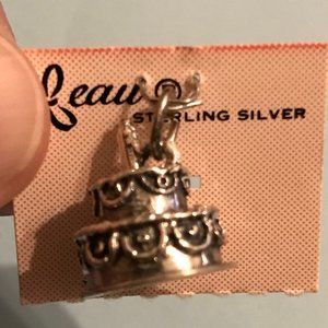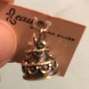 Sterling Silver Leaf Cake Charm - with engraved "Happy Birthday" on the bottom. Never worn. Still attached to original card. It's a 2-layer cake with single candle.