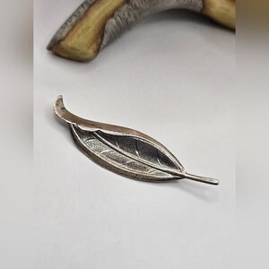 Elegant sterling silver leaf brooch with intricate detailing. Perfect for adding a touch of nature-inspired elegance to any outfit.