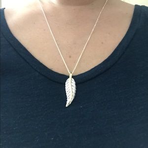 This is a great piece for layering!!! 20" Sterling Silver Chain with two-toned leaf pendant. The pendant measures an inch and a half long. Such a pretty and trendy piece! Worn Once!