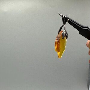 Sterling Silver Leaf Pendant 925 Amber Yellow Color Glass Crystal Faceted Fall