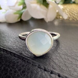 Sterling Silver Light Blue Green Teardrop Gemstone Ring Solid 925 Sterling Silve