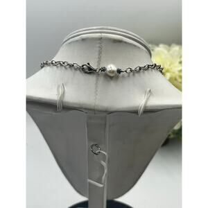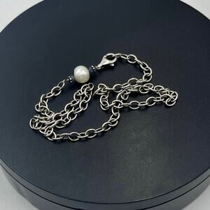 Sterling Silver Link 8mm White Pearl Sapphire Beads Chain Necklace 17" 12.4g
