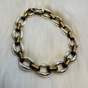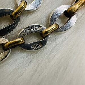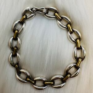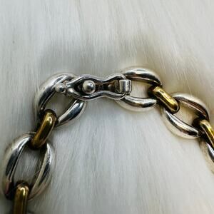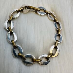 Sterling Silver Link Bracelet with Gold Accent. Snap clasp. Measures 7.5”. Good used condition.
