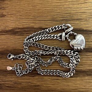 STERLING SILVER RHINESTONE LOCK CHOKER NECKLACE MEASURES 16.5”-19”