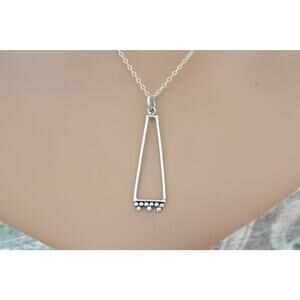 This is a beautiful Sterling Silver Long Rectangle Charm with Granulation Necklace. Both the charm and the necklace are Sterling Silver