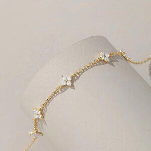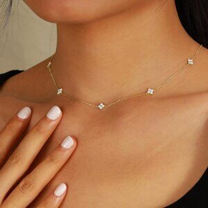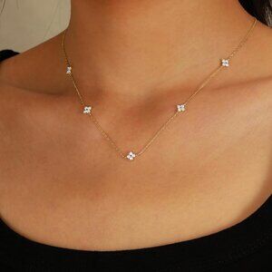 Sterling Silver Lucky Leaf Necklace 14K Gold Plated CZ Pendant for Women