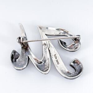 Sterling Silver Marcasite Script Letter M Brooch | Vintage 925 Initial Pin