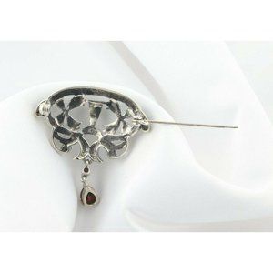 Sterling Silver Marcasite with Simulated Garnet Pin Brooch