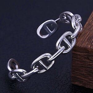 Sterling Silver Mariner Coffee Bean Bangle Cuff Bracelet