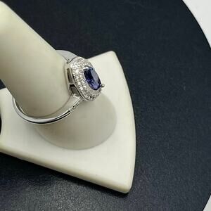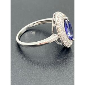 Sterling Silver Marquise Iolite CZ Double Halo Ring Size 8.75 Vintage Style