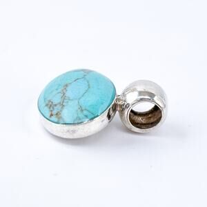 Elegant sterling silver pendant featuring a polished oval magnesite stone in vibrant turquoise blue with natural matrix veining.