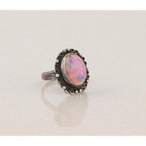 Sterling Silver Mexican Pink Foil Opal Ring Size 6 1/2