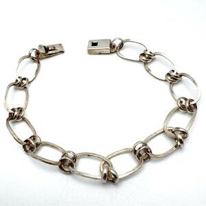Sterling Silver Mexico Oval Link Chain Bracelet Box Clasp Vintage 7.5