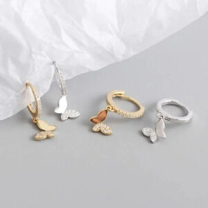 Sterling Silver Minimalist Butterfly Hoop Earrings