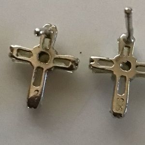 Sterling Silver Mini-petite Crystal Cross Earrings