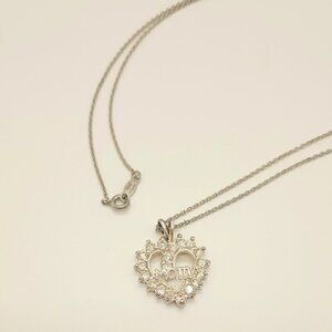 Sterling Silver 925 CZ Heart Mom Pendant Necklace