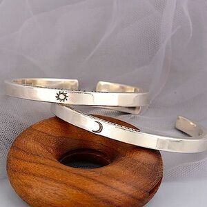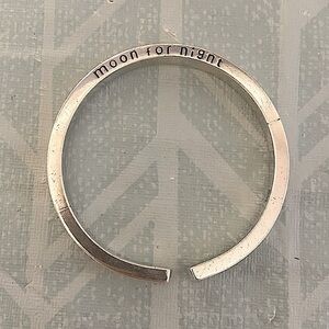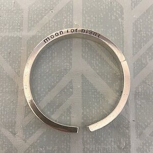 Sterling silver cuff bangle bracelet says moon for night. Adjustable in size will fit up to 8.5”.