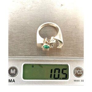 Sterling Silver Moon & Star Ring w/ Emerald & CZ Unique Celestial Statement