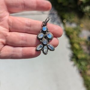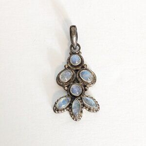 Sterling Silver Moonstone Pendant Charm Necklace Stamped 925 Teardrop Floral