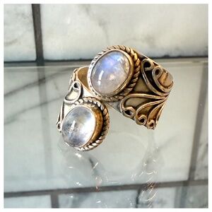 Moonstone is known for its calming and balancing energy, making this ring not only a stylish accessory but also a meaningful one that can promote peace and harmony in your life.