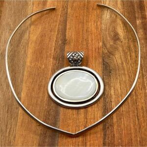 Sterling Silver Mother of Pearl Artisan Pendant on Collar Necklace