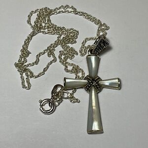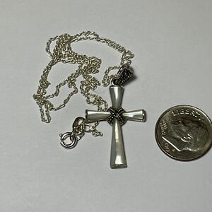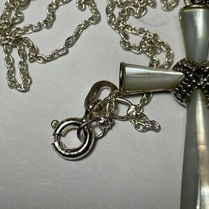 Sterling Silver Mother of Pearl Cross with Marcasite Accents. 19.5” long