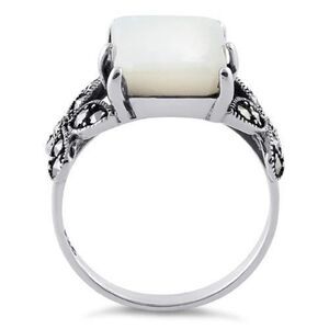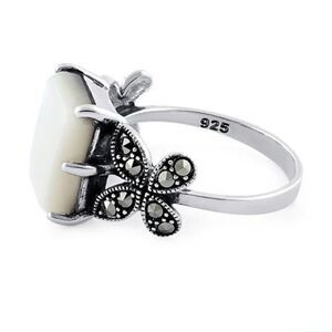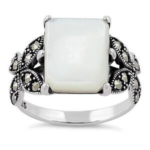 Sterling Silver Mother of Pearl Square Butterfly Marcasite Ring New
