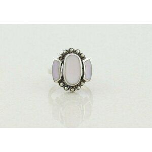Sterling Silver Mother of Pearl and Marcasite Ring Size 6 1/4