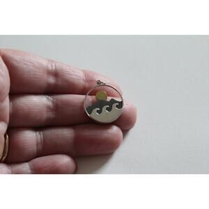 Sterling Silver Mountain and Ocean Pendant with Bronze Sun
