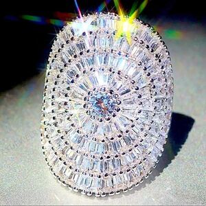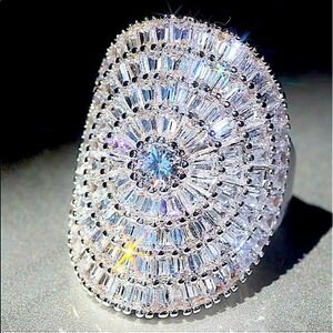 Sterling Silver Multi Layer Zircon Baguette Statement Ring