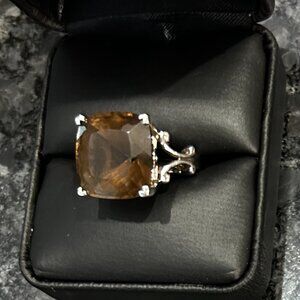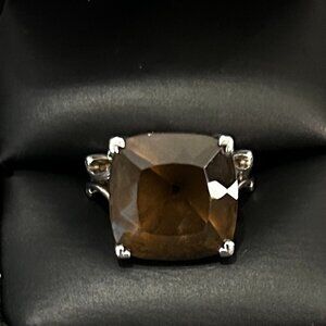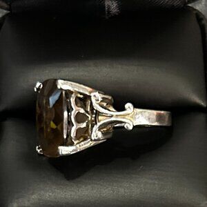 Sterling Silver Multi Prong Smoky Quartz Ring Size 6