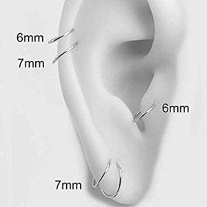 Sterling Silver Multi Size Open Piercing Hoops Cartilage Helix Tragus Handmade