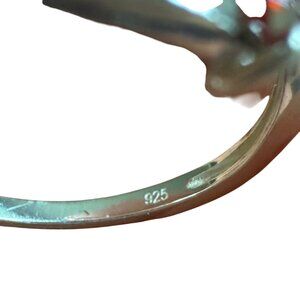 This sterling silver ring features vibrant red, green, and pink gemstones, creating a sophisticated, multicolor design. The 925 stamp ensures authenticity.