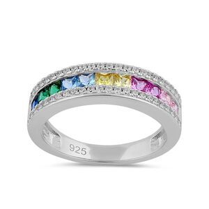 Sterling Silver Multicolor Rainbow CZ Band New