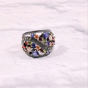 Women's Size 8, Sterling Silver Multicolored Gemstone Ring.