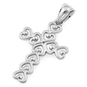 Sterling Silver Multiple Heart Shaped Cross Pendant New