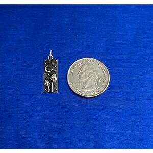 This is a Sterling Silver Rectangle Mushroom Moon Stars Necklace. Both the charm and the chain are made from sterling silver. :) This charm is on an 18 inch chain.