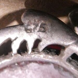 Two gorgeous earrings, mismatched but look very cool together. One has a small turquoise stone and is signed Nofchissey on the back(a prolific Native jewelery maker). The other is stamped with what looks like 675 on the back and has either carnelian or agate stones. They need a good cleaning but are overall in great condition.